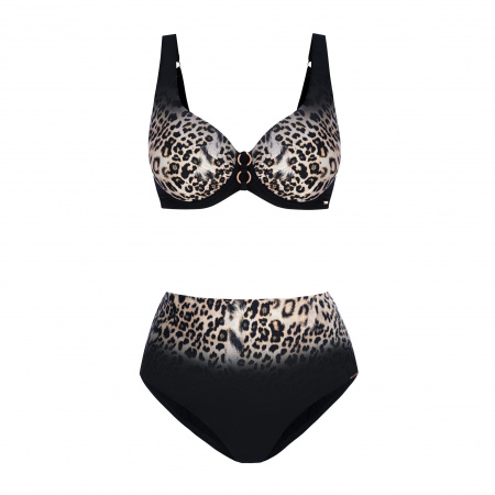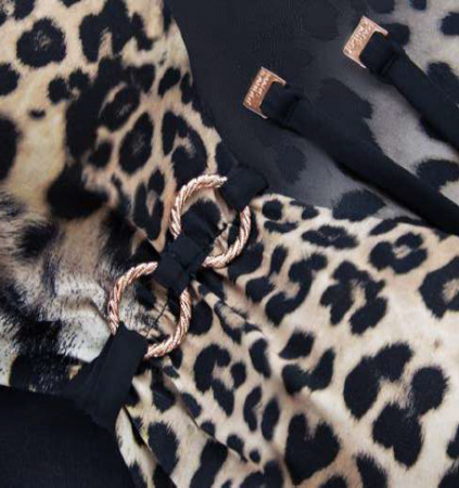 Может ли леопард поменять пятна? Если менять, то со смыслом: на основе леопардового рисунка можно создать эффектный купонный принт (Placement Print) с градиентом, применить в модели сборку по линии декольте, интригующе узкие однотонные бретели,