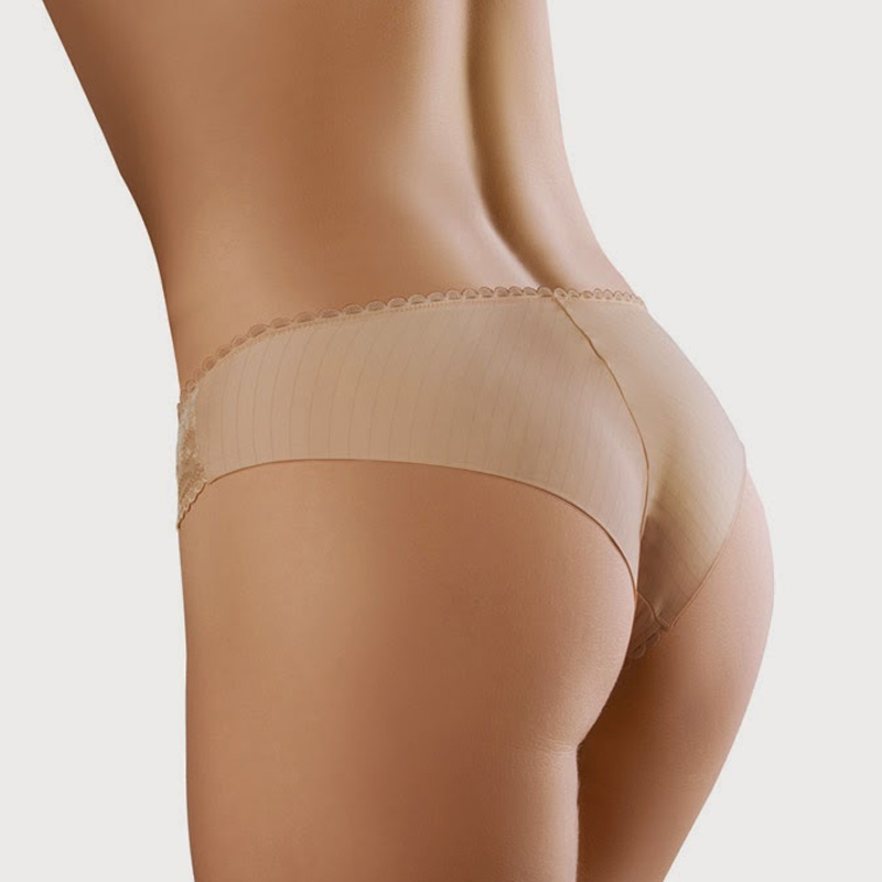 Брифи-бразилиана со средней линией талии.Спереди по бокам вставки из вышивки на неэластичной сетке с ажурным краем.Сзади шов по центру , двойная эластичная микрофибра в подворот.Кружевной эластичный кант. Декор - тематическая подвеска, повторяющая орнамент вышивки. Cостав - тончайшая принтованная микрофибра с геаметрическим узором и изысканная вышивка на неэластмчной сетке.